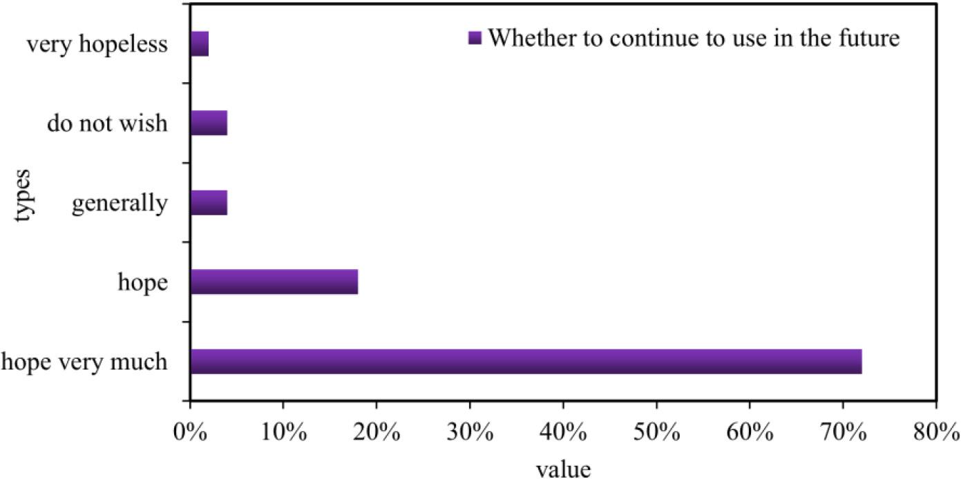 The experience of the teaching system is shown in Figure 10. After two months of application of multi-sensor technology, more than 90% of the students indicated that they could continue to use this system in the future. This showed that the application of multi-sensor technology in education and teaching had been accepted by the majority of students.