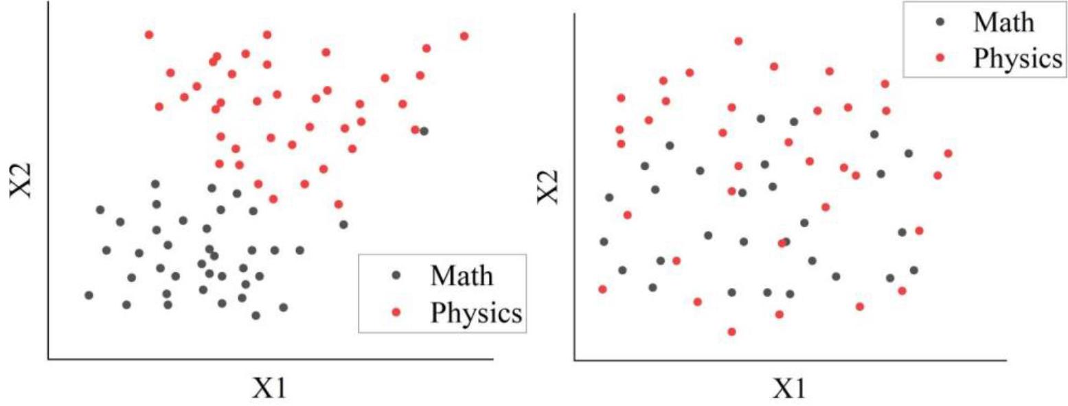 The first experiment is to verify the effectiveness of the MTL algorithm for the optimization objective of minimizing distributional differences in domain differences. The distribution of knowledge states in the source and target domains before and after hard parameter sharing are compared. Figure 7 shows the visualization results of the MTL algorithm for dimensionality reduction, before migration on the left and after migration on the right. There is an interesting conclusion about the M → P task. Before minimizing the knowledge discovery between the source and target domains, the knowledge state distributions of the different domains are inconsistent due to their distance from each other. However, after sharing through hard parameters, the distributions of the two domains completely overlap. This indicates that hard parameter sharing is an effective method to realize domain adaption, and hard parameter sharing can be used effectively for domain adaption.