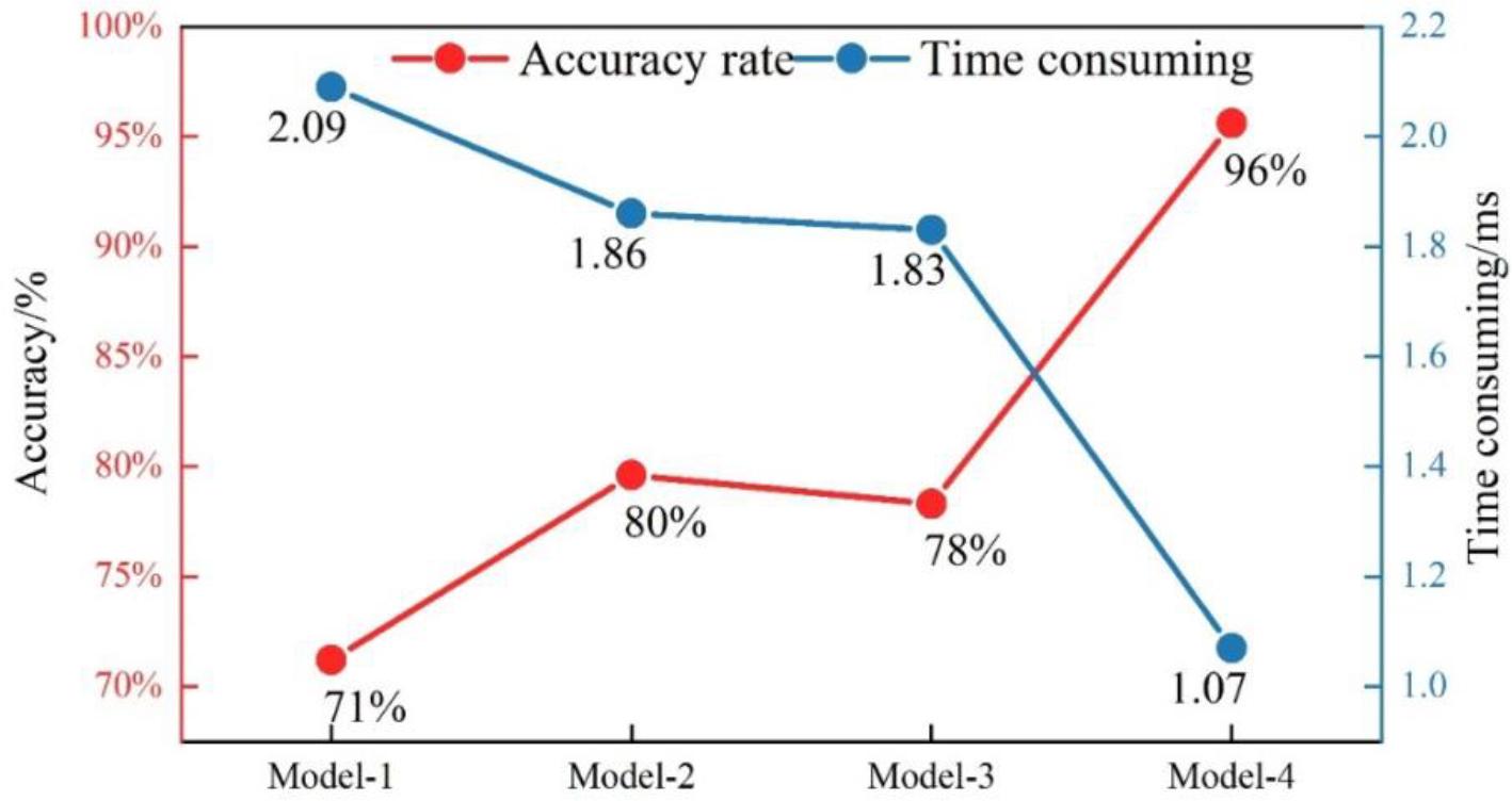 Through the comparative analysis, it can be clearly seen that the finger motion gesture recognition model proposed in this paper, which incorporates the MeanShift joint localisation method and Kalman technique, significantly outperforms the other comparative models in terms of accuracy, with a recognition accuracy of 96%. The recognition process takes less time, 1.02ms less compared to the original model.