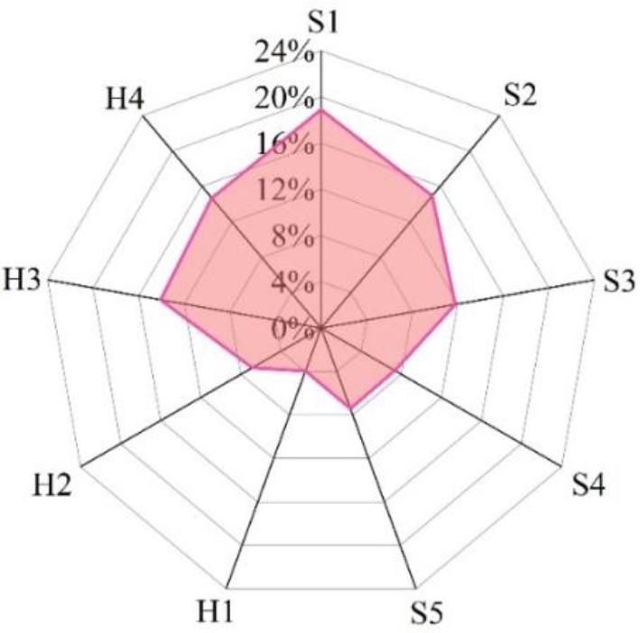 The constructed smart sports teaching environment is divided into hardware and software environments, and the hardware environment includes hardware facilities (H1), smart sports classroom (H2), smart sports venues (H3), and smart sports teaching facilities (H4), and the software environment includes library resources (S1), smart teaching platform (S2), smart education model (S3), digital resources (S4), and digital services (S5). In this paper, the constituent elements of the smart sports teaching environment are surveyed again for the degree of demand, and the results of the survey on the degree of demand for the elements are shown in Figure 5.