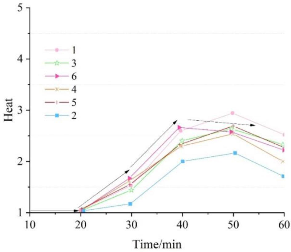 The average skin temperature data of subjects wearing garments made of 6 garment fabrics at various stages in an environment with a relative humidity of 93% and a temperature of 24°C are shown in Table 5. A t-test of the mean skin temperatures of the subjects while wearing the six garments showed that in the period of 0-10 min, the mean skin temperature of the subjects wearing the garments made of fabric No. 4 was higher than that of the garments made of the other five fabrics. In the small exercise condition, i.e., 5km/h brisk walking phase, the mean skin temperature of the subjects wearing garments made of fabrics No. 4 and No. 5 was higher, and the mean skin temperature of the subjects wearing garments made of fabrics No. 1, No. 2, No. 3 and No. 6 was lower. In the heavy exercise condition, i.e., 7km/h fast running phase, the mean skin temperature of the subjects wearing the garments made of fabrics No. 4 and 5 was higher, and the mean skin temperature of the subjects wearing the garments made of fabrics No. 1, 2 and 6 was lower. In the recovery phase, i.e., the 2.6 km/h slow walking phase, the mean skin temperature of the subjects wearing the garments made of fabrics No. 4 and No. 5 was still higher, and the mean skin temperature of fabrics No. 2 and No. 6 was lower. It can be seen that the average skin temperature of subjects wearing garments made of wool fabrics was consistently higher than the average skin temperature of subjects wearing garments made of other fabrics throughout the experiment.