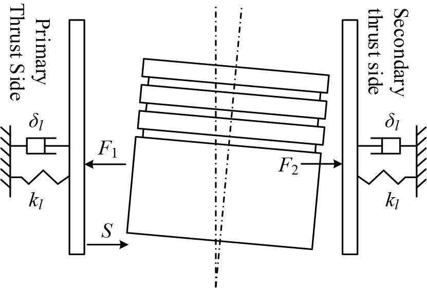 During the operation of the internal combustion engine, the piston will produce a second-order motion, affected by the side thrust of the piston knocking the cylinder liner to produce a strong vibration. The vibration model of the cylinder liner and its force analysis are shown in Figure 2.