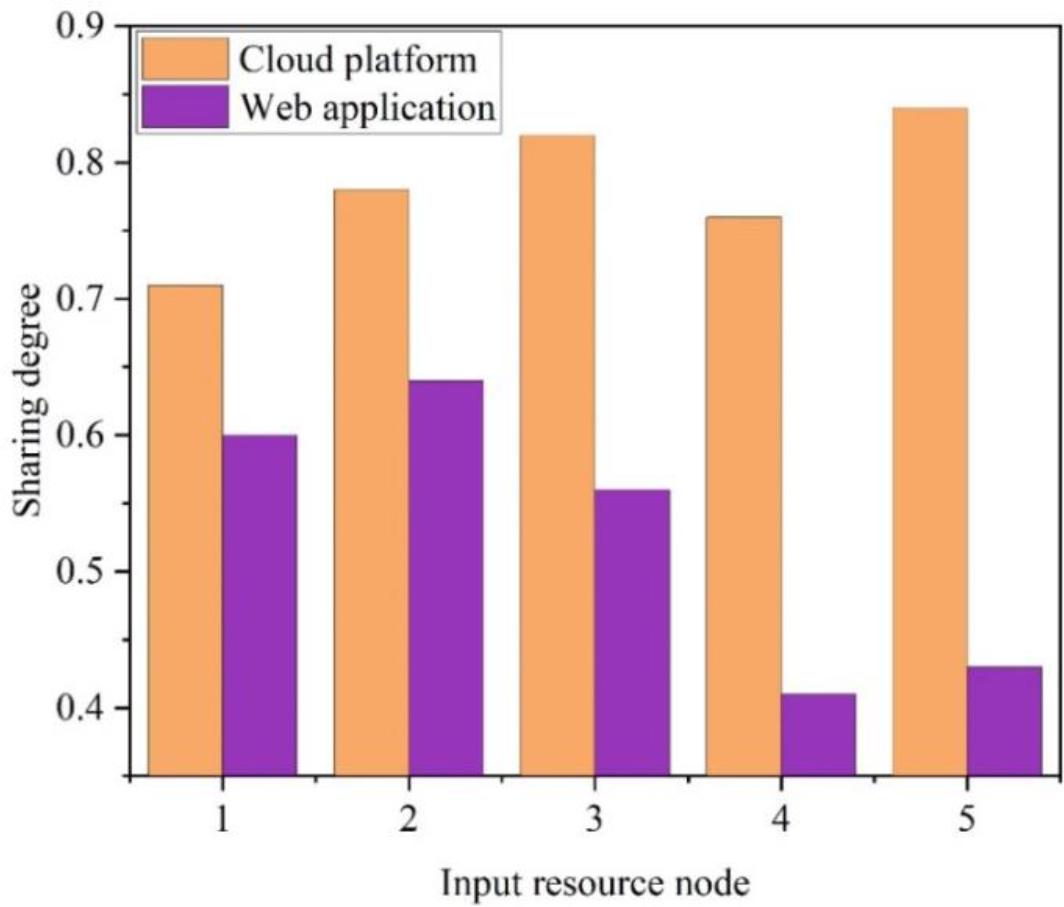 Calculate the information sharing degree of the two systems under five different resource nodes respectively:
