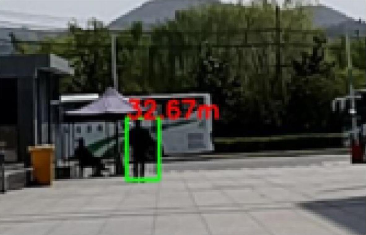 The distance between people obtained by using the personnel spatial positioning technology in this article is 32.67 meters, and the measurement result of the field equipment is 32.62 meters, with an error of 5 centimeters (see Figure 9). The error is within the acceptable range in actual use and does not have any impact on the algorithm, nor does it affect the final result of personnel behavior identification. For personnel image positioning, this project chooses to conduct experiments on people 50 meters away.