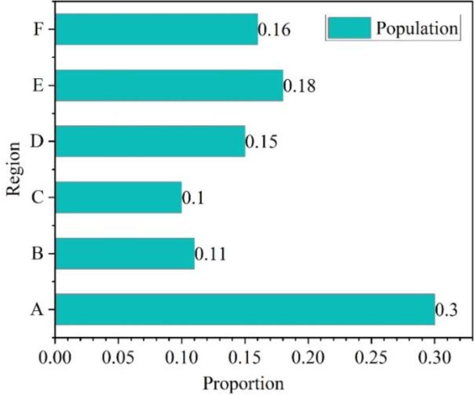The following is the name of the geographical location of the city that corresponds to the centre point of the first few data rows in the clusters according to the improved clustering algorithm of this paper.The top six areas of the population gathering density in city A are shown in Fig. 4. The data in the figure is based on more than 20 million pieces of data statistics and screened out the proportion of GPS points, due to the top six areas of the number of people more often and relatively concentrated, it was chosen to rank the top six areas, as can be seen from the figure, the proportion of the highest is the A area, is the six areas of the thirty-one per cent, which is sufficient to prove that the number of user activities in this area is very large, the city government’s proposal is to be more in this area of the transport The recommendation to the municipality is to have more traffic in this area as an emergency programme and as a key target for fire and disaster prevention. Such data is also the effect of clustering statistics under a large amount of data, and can not accurately or very accurately reflect the real situation, but since it is a statistical conclusion, there must be a relative reference value, and the results of this statistics can be combined with the results of other indicators to facilitate the leadership of the leaders to make reasonable decisions.