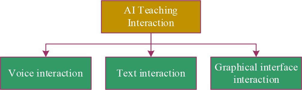 The English classroom needs an interactive teaching environment because the learning environment in a university is not the same as that in an English classroom. Many universities have more conditions and opportunities to create an interactive English environment through English corners, foreign teachers, exchange students, internships in foreign companies and many other channels, but there is no such interactive environment inside or outside the classroom. In the traditional classroom language environment, it is very difficult for students to understand English, let alone have a smooth and comfortable English conversation, which is the root of the problem of “deaf English”. However, artificial intelligence can provide technical support for the interactive English teaching environment. Through artificial intelligence technology, computers are able to comprehensively process text, graphics, images, sound and other media information, establish a logical connection between this information and integrate an intelligent system, which is the most important feature of the intelligent system is that it can provide a variety of interactive methods of English teaching. The English teaching interactions provided include voice, text, and graphical interface interaction, and these three interactions can be performed simultaneously to achieve the corresponding teaching effects. The teaching interactions provided are shown in Figure 1.