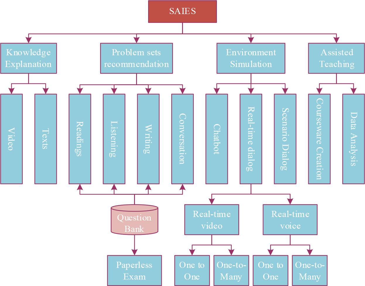 Secondly, students can apply what they have learned by previewing and reviewing knowledge points through video or text through the knowledge explanation module in the system. Thirdly, students can understand their own English knowledge system and test their own mastery or lack of basic knowledge through the recommended exercises module in the system, in which the types of exercises cover four aspects of English: reading, listening, writing, and conversation, aiming to comprehensively examine students’ listening, speaking, reading, and writing skills. Finally, after students complete the exercises, the module automatically generates the corresponding assessment levels and learning suggestions. In addition, teachers can also conduct online tests for students through this module to measure their real knowledge mastery. Due to the fact that the examination system is based on a large and scientific question bank, test question analysis and examination results analysis will be provided after the examination is completed. Therefore, these not only provide references for English teachers to teach according to their abilities, but also help learners to personalize their learning. The users of the environment simulation module are also students. Finally, special emphasis should be placed on the environment simulation module in the system, which takes the chatbot as the main part, where the user inputs voice or text information system through the interface to intelligently obtain the input information, and the use of text dialogues, video dialogues, role-playing dialogues, scenario dialogues and other functions can realistically simulate the actual scenarios of the English common life and create an active and authentic language learning atmosphere. The functions of each main module and sub-module are described in detail below.