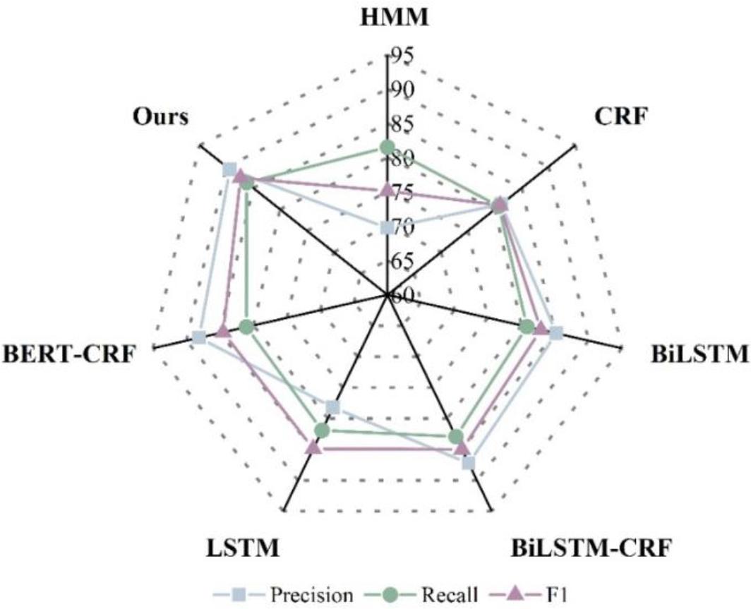 Common model evaluation metrics include precision rate, recall rate, and F1 value. Precision rate is the number of key elements correctly identified by the model (TP), as a proportion of all identified key elements (TP+FP). Where FP is the number of misidentified key elements. Recall is the ratio of the number of key to be (TP) correctly identified by the model to all true key elements (TP+FN). Where FN is the number of non-critical elements that were incorrectly identified.