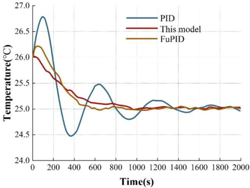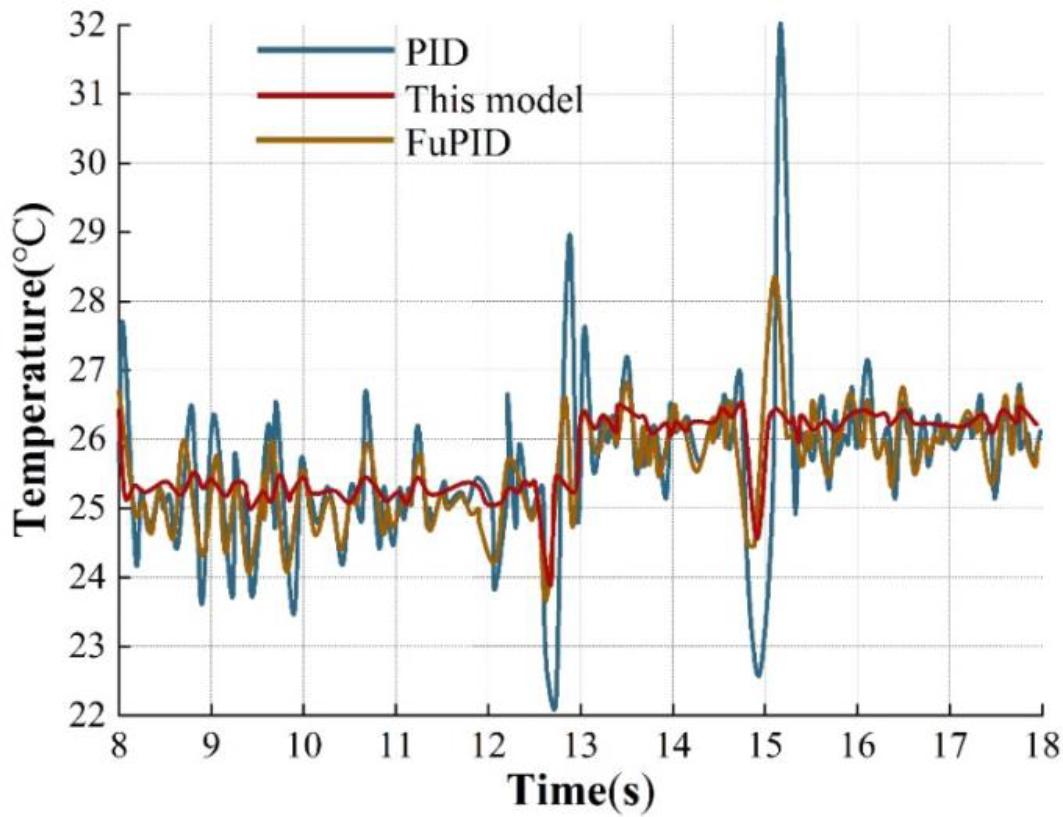 In summary, the conventional PID algorithm performs poorly in the face of rooms with large load changes and more frequent fluctuations. The model in this paper can solve the response overshoot problem well.