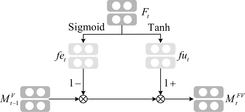 To perform the forgetting process, the knowledge mastery state matrix of the previous moment is erased, and then the knowledge mastery matrix is updated. The main structure of the forgetting module is shown in Figure 1.