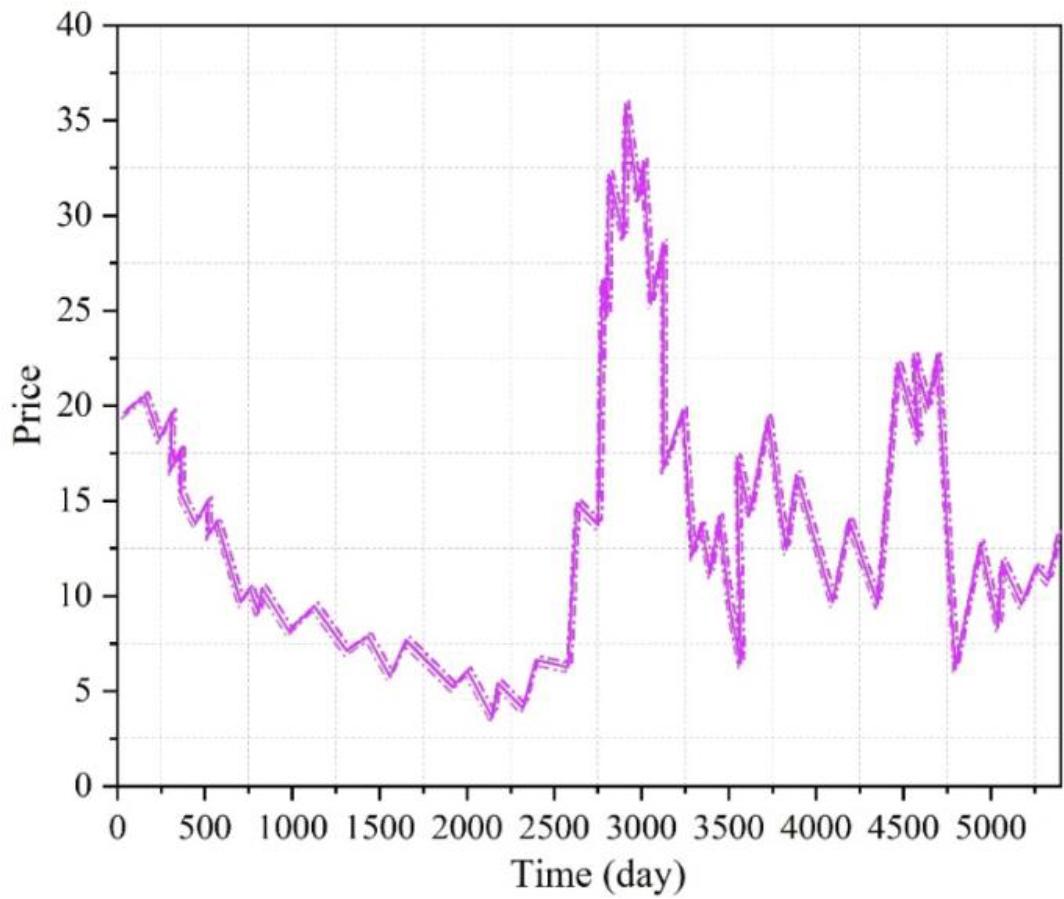 The experimental environment is Anaconda, the programming language is Python 3.6, and the model training framework is Tensorflow 1.4 based on Keras. The number of neurons in the input layer of the LSTM model is 4, the number of hidden layers is 1, the number of neurons in the output layer is 1, and the step size required for prediction is 40. The Adam algorithm is used to optimize the parameters during the training process, and the sample batch, the number of hidden layer units, the learning rate, and the number of iterations are set as the parameters to be optimized, and the specific value ranges are set as follows: the sample batch takes the value range of