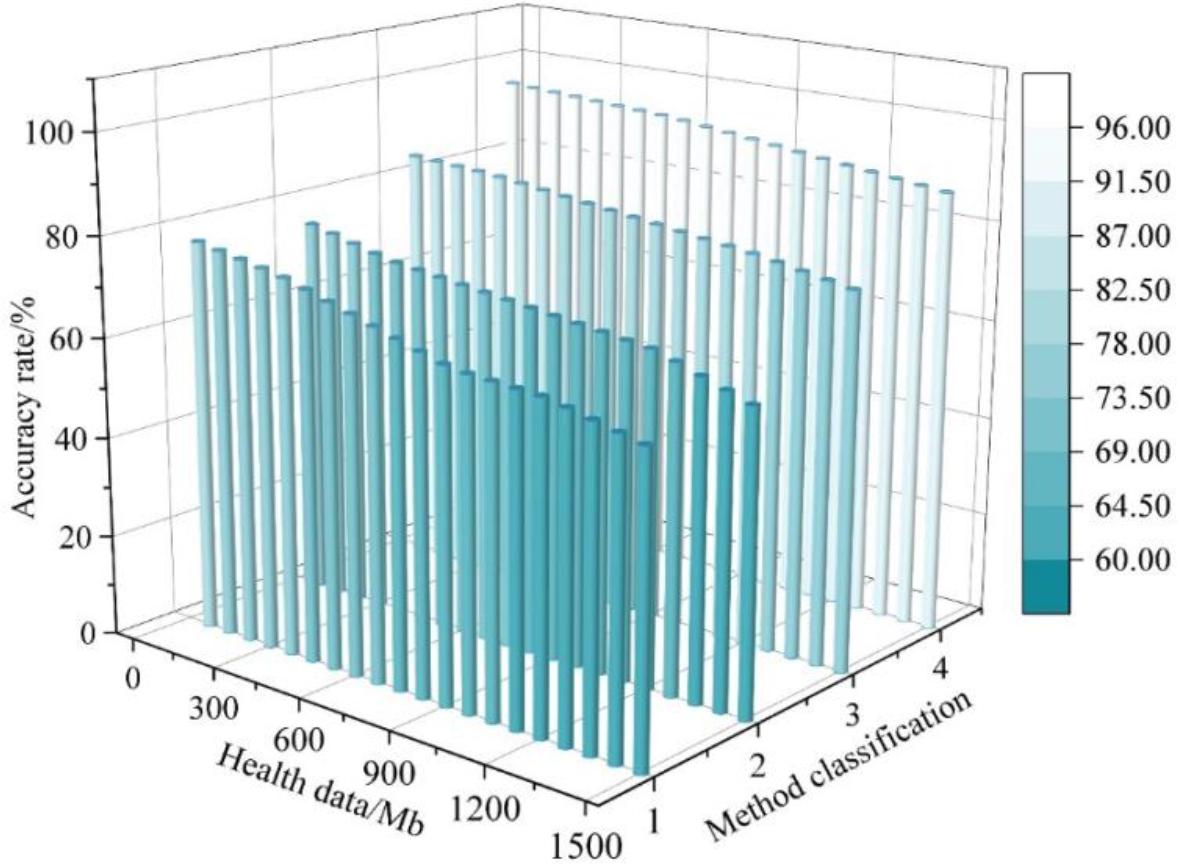 The data was obtained from students of one of the majors at a university, including all students in any three classes, totaling 150 people and a volume of 1500 MB of physical data. The tester developed by the university was used to measure the body mass data of the study subjects over a period of one month, the privacy information of the initial data was anonymised and confidential, and only the relevant body mass record information used for the experiment was used. The execution times and monitoring accuracy of different methods were compared.