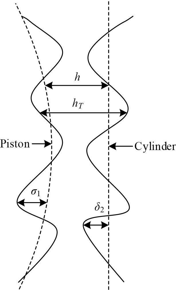 If the effect of piston and cylinder liner surface roughness on lubricant film stability is neglected, the oil film thickness between the cylinder liner-piston is the nominal oil film thickness