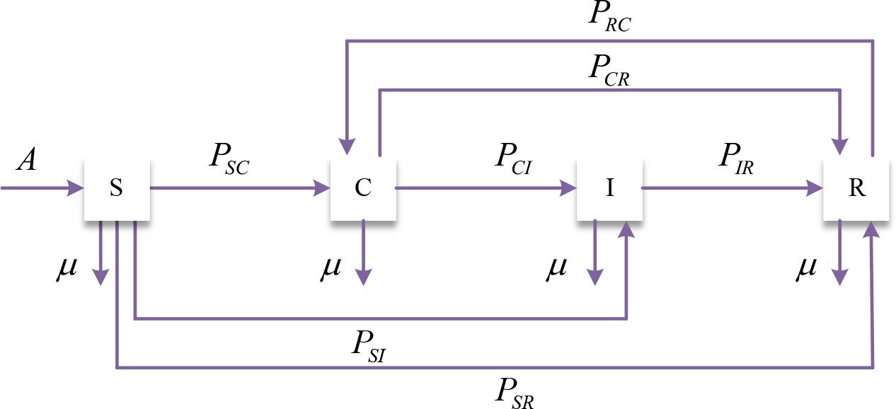 The differential equation of the SCIR propagation model is: