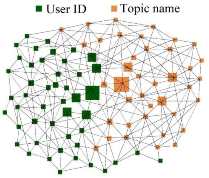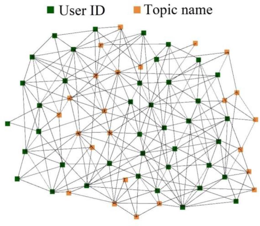 The topic and the user’s social network structure visualization