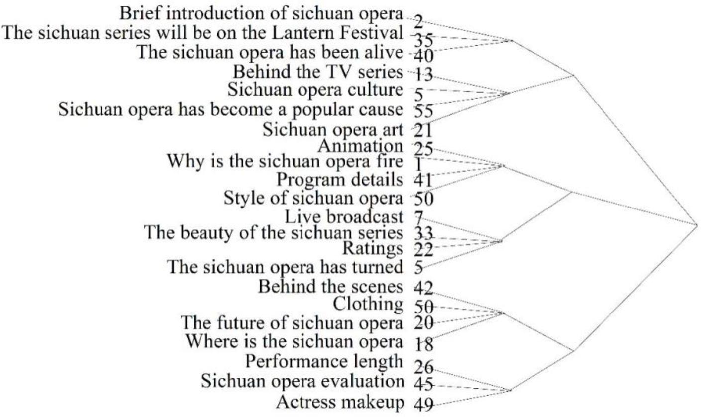 From the “Shu style and elegant rhyme” program related topics selected 50 high attention, discussion number of topics, after deleting duplicates and low degree of relevance of the user based on the final determination of the 20 events concerned nodes, the relationship between the data as a link, and to construct a 0-1 directed adjacency matrix adjacency matrix, 0 indicates that the two users topic There is no association relationship, and 1 indicates that there is an association relationship between two user topics. Then the adjacency matrix is imported into the social network analysis software for metrics measurement. The results of visualizing the social network structure of Shu Feng Ya Yun topics and users are shown in Figure 6. As can be seen from the figure, the connection between Shu Feng Ya Yun topics and users is intricate, yet closely connected. It is characterized by a network of nodes and complex relationships. The official media in the key center position are People’s Daily, Punch News, China Information Network, Panzhihua Daily, etc. The topics in the key center position are topics such as Shu Feng Ya Rhyme, Behind Shu Feng Ya Rhyme Out of the Circle, and Why Shu Feng Ya Rhyme can be on fire. From this, we are able to see that there is a close connection with many topics as well as the related user media, indicating the total amount of traditional drama of information dissemination and the formation of many topics.