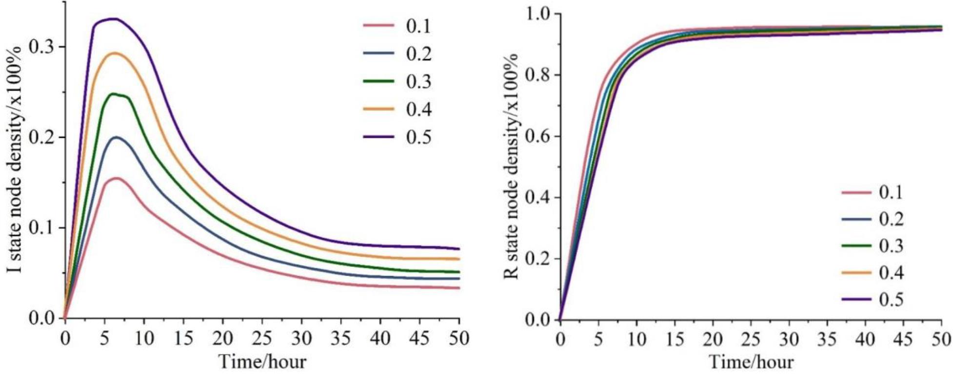 The intensity of intervention by relevant departments When the relevant departments take restrictive measures on the dissemination of traditional drama, the greater the intensity of intervention means the higher the importance of traditional drama, which prompts more network users to believe in the real information, which leads to the existence of more immune users in the initial stage when direct immunization begins to work. Credibility of real information The credibility of the government and other relevant departments as the source of real information is an important guarantee of the credibility of information, and the media, as the half-stage of information dissemination, is the medium linking the government and the masses, which is the catalyst for enhancing the credibility of information. In order to control for traditional drama transmission, this paper intervenes in the model using social factors and takes into account the effect of noise interference by defining the direct immunization rate