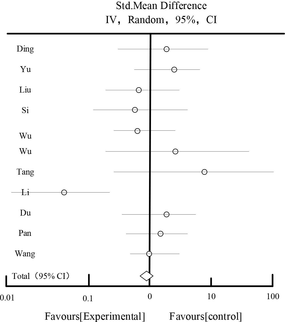 | Study or Subgroup | Experiment | Control | Std,Mean Difference | |||||